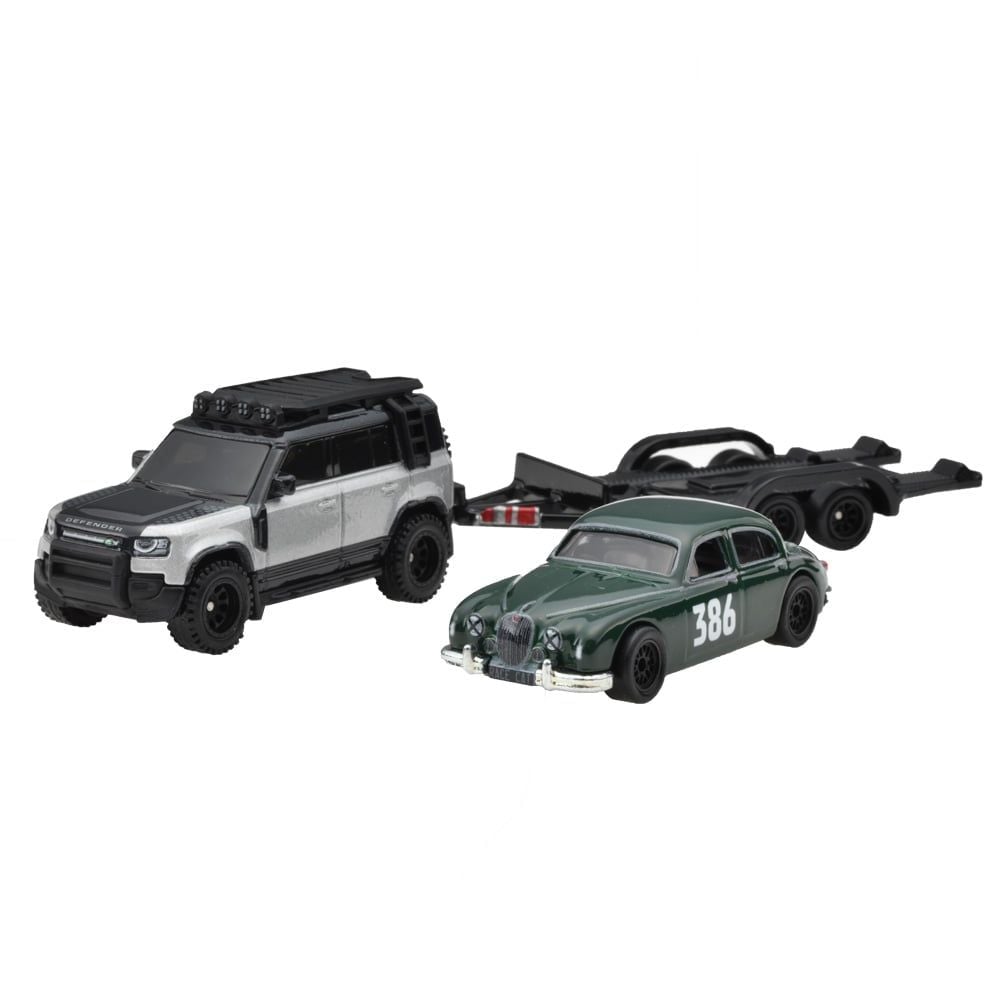 HOT WHEELS PREMIUM - SET TEAM TRANSPORT 2023 LAND ROVER DEFENDER 110 VS JAGUAR MK1 - JBM29