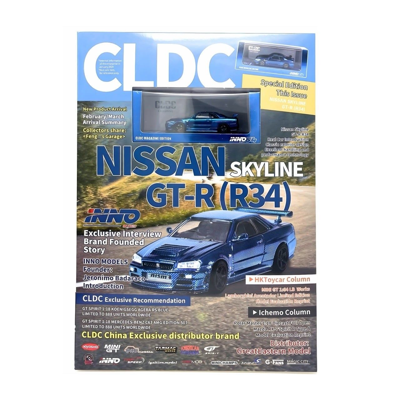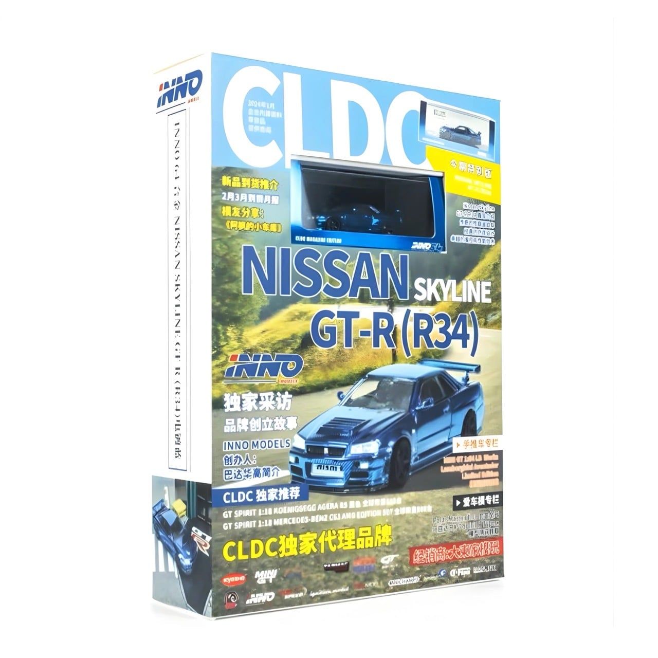 INNO64 - NISSAN SKYLINE GTR R34 CHROME BLUE + MAGAZINE CLDC CHINA SPECIAL EDITION - IN64-R34-CHBLU